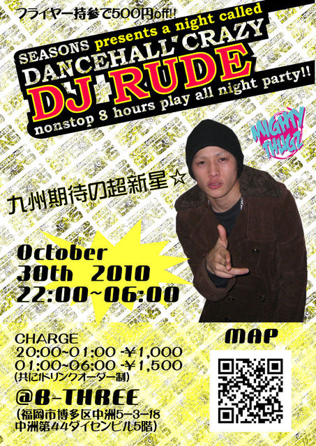 九州ダンスホールレゲエ界きっての要注意危険セレクター、DJ RUDEが!