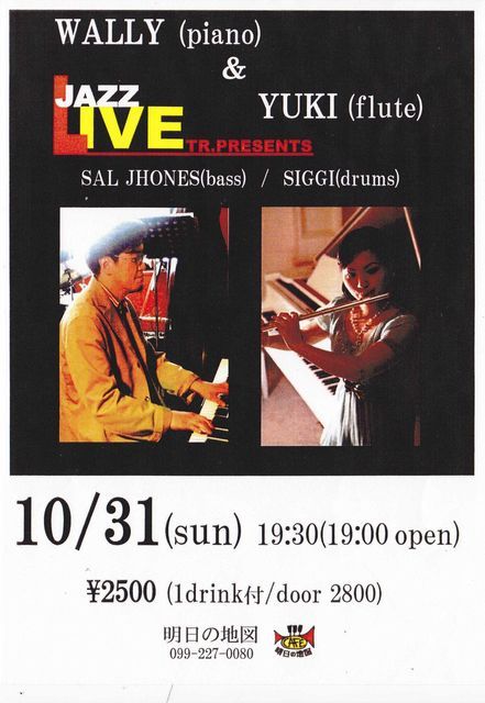 TR<田島良一(Piano)>JAZZ スクール PRESENTS!! 今月の田島良一ジャズスクール生徒さんによる「CAFE 明日の地図」のLIVEは WALLY(PI) & YUKI(FL) JAZZ LIVE Piano:Wally 某音楽系大学を卒業後、ほとんど練習をしないまま現在に至り、今ではまともに弾ける曲がない状況‥。そんな感じで、昔憧れていたジャズピアノに挑戦。ピアノを芹澤尚子・龍野順義・黒木俊行、オルガン、チェンバロを大塚直哉、ジャズピアノを田島良一の各氏に師事。レッスン&セッションでの撃沈を重ねている。 Flut