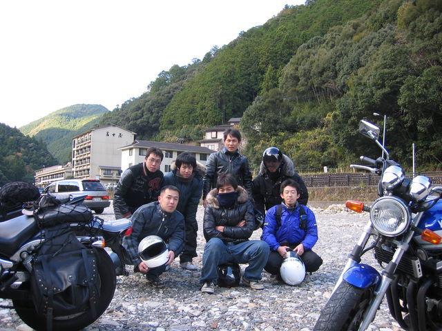 2010年度 最後のツーリング企画!(写真は4年前のメンバー) 4年ぶりに、川湯温泉の『仙人風呂』へ入りに行きます。(※混浴・水着着用) 混浴が苦手な方は、すぐ近くにも温泉施設がありますので、そちらでくつろいでもらってもOKです! 昼食ですが、各自で用意願います。 また、平地では大丈夫でも、山の中は極寒の予感がします・・・ 防寒対策はしっかりしてきて下さい! ○ 予定ルート ・生石→清水→清水湯川林道→ごまさんスカイタワー→龍神村→龍神本宮林道→川湯温泉 (※ 林道区間は、基本 1〜1.5車線の道だ