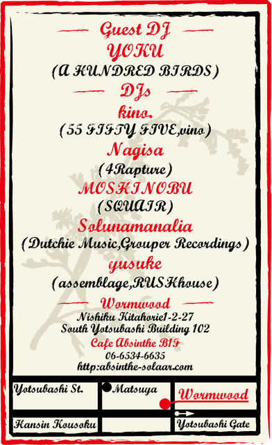 Door : 2500yen/2d, Ticket 1000yen/no drink, with Flyer 500yen off