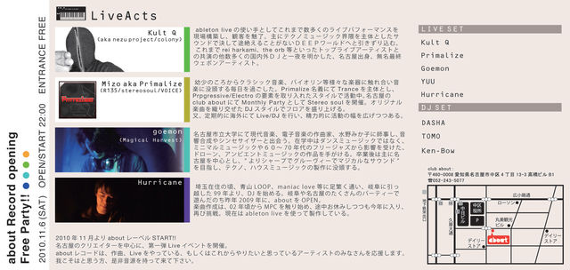 ※ADVのご予約は開催日当日11月20日(土)の21時までに代表者のお名前(カタカナフルネーム)と枚数をMixi(HALsoul)へメッセか<pulse@club-about.com>までメールを送信ください。