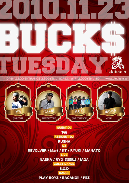 *ゲストの方は、1時まで¥1000/1d、1時以降¥1000/0dでご招待致します。