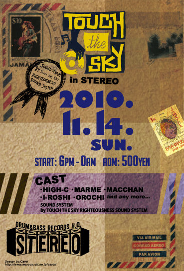 CLUB STEREOでの夕方17時から終電までのイベント・Jamaican Sundayの告知です。