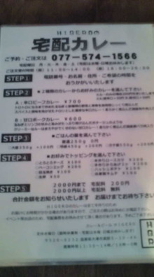 11月より宅配カレーを始めます! 宅配地域は雄琴〜和邇間の近郊のみになります。 お近くでお仕事の方、是非ランチタイムにご利用下さい。 ご連絡頂ければ、メニュー表をお届けに伺います! よろしくお願い致します。 また、今月より ランチメニューが変わります! そして、新メニューの 『カツカレー』 『焼きカレー』 が登場いたしました。 是非ご賞味下さい!