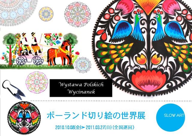 <ポーランド切り絵の世界展> 場所:福岡 picnika 会期:2010.11.3〜2010.11.16 一点一点作家が心をこめて切り抜いた、色とりどりの花、ユニークな顔をした鳥や馬、どこか懐かしい素朴なポーランドの田舎の生活。ポーランドの伝統の切り絵が、日本中を旅します。華麗な模様、ビビッドな色彩、繊細な手仕事。ゆっくりとした時間の中で、磨かれてきた、伝統の作品の数々を展示&販売します。額に入れたい大きな作品から、手のひらに収まるほどの小さなもの、イースターエッグ、その他、ヨーロッパ中で注目を集める、ポーランドの若手デザイナーに