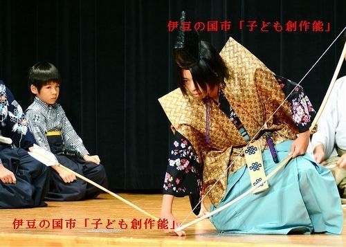 もう来週に迫ってしまいましたが、大仁神社で「子ども創作能」を上演します。 能楽師の指導のもと、地元の小学生が元気いっぱいに「能」の舞台を勤めます! 以前は「狩野川能」の中で上演されてきたものですが、今年は神社の秋祭りの中での上演になりますので入場無料ですっ! どうか市民のみなさまの暖かいご声援をお願い致します〜m(__)m 【子ども創作能上演】 とき 11/3(文化の日) 大仁神社秋祭りの中での上演です ところ 大仁神社・神楽殿(大仁駅徒歩5分) 午後1時30分 子ども仕舞「玄象」「小督」