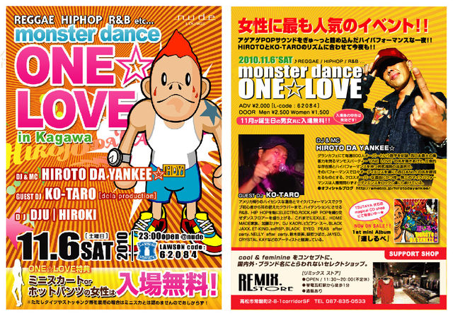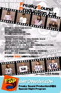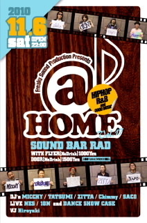 いよいよ明日です。 Freaky Sound Production Presents @HOME vol.17 奇数月のレギュラーパーティーとして、今回で今年は最後となるので、クルーみんなが気合い入ってます! 是非、明日はRADに足を運んで頂けると光栄です。 スタッフ一同お待ちしておりますm(_ _)m では、詳細です。 2010.11.06.SAT Freaky Sound Production Presents @HOME vol.17 at SOUND BAR RAD with Flyer 1000yen[No Drink] Door 1500yen [No Drink] info: original_poker@ezweb.ne.jp freaky_sound_production@yahoo.co.jp http://ameblo.jp/freak