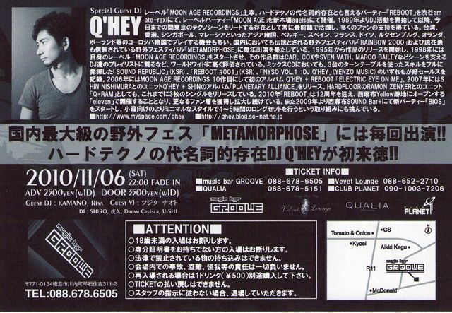 ハードテクノの代名詞的存在DJ Q'HEYが初来徳!!