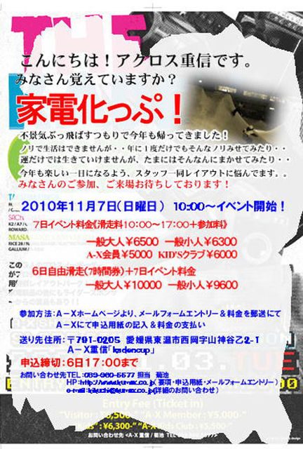 どもこんにちは 毎年恒例の 家電化っぷ 今年もやってきましたよ♪( ̄▽ ̄)ノ″ 参加したことある人 参加したことない人 みんなで今年もワイワイ参加しちゃおーじゃないですか 大会じゃなくワイワイイベントなんで上手いとか下手とか関係ありません 家電化っぷ の為にアクロスのレイアウトが変身貸切りイベントです 家電化っぷ 言うくらいなんで賞品は家電だったりします♪( ̄▽ ̄)ノ″各メーカーからの協賛品も盛りだくさんで、