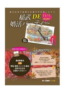 紅葉の稲武で美味しい婚活パーティーはいかがですか? 【集合場所】 豊田市駅よりバスが送迎します♪、 またはマイカーで直接現地『どんぐり工房』へ(どんぐりの湯の向かい) …お好きな方を選択できます! 【開催場所】 豊田市旧稲武町(名古屋の方はご存じ野外教育センターの稲武です) 名古屋ICから70分(香嵐渓で混むので時間に余裕を) 迂回路ルートhttp://mixi.jp/view_bbs.pl?id=13392399&comm_id=1088077 【スケジュール】 8:15 豊田駅集合 または 9:30 稲武どんぐり