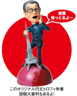 お題 「地球最後の日、かくれ名古屋人が名古屋弁で絶叫!さて何といった?」 投稿資格 誰でも投稿できます。 投稿方法 下記「投稿フォーム」から投稿できます。 http://www.名古屋かるた.com/toko1.html 締切 10月31日(日曜日)必着 審査 予選 すべての作品から出演者と事務局が事前に10点前後の入選作を選びます。 本選 11月7日 ちんちん落語会の会場で入選作を披露してお客さんを交えて最優秀作を1点選びます。 *当日のご来場は審査には関係ありません。・・・ (できれば、来て欲しいけど(^_^; ) 賞