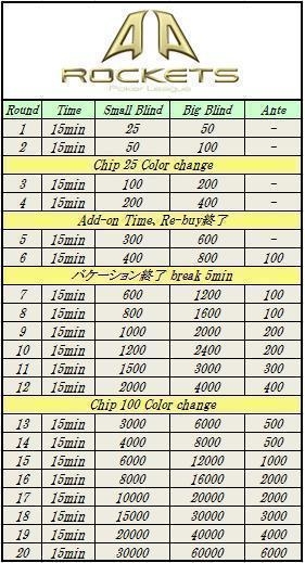 皆様のご参加をお待ちしておりまーす。m(_ _)m ≪20:30≫ エントリー開始 ≪21:00≫ トーナメント開始 (22:30までバケーションあり) ≪ 1:00≫ トーナメント終了 エントリーフィ : 2,000円 5,000点(別途エントランス1,000円が必要です) リバイ : 1,000円 5,000点(当日のみ使える1drinkチケット1枚つき) 4ROUND終了までに持ちチップが5000点以下の時に1人1回のみ可能 ※リバイされた方にはアッドオン権はありません アッドオン : 1,000円 5,000点(当日のみ使える1drinkチケ