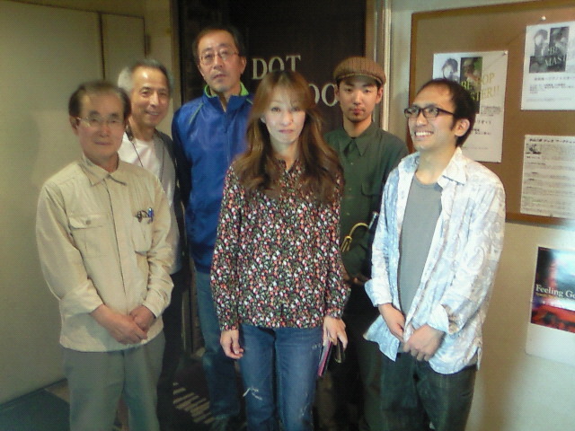 2010.11.10(wed) open:19:00 start:20:00 charge:\1,800/(DRINK 別途) place:DOT COOL(静岡市葵区常磐町1-5-4パレスビル6F) http://www2.tokai.or.jp/DOTCOOL/ ?:054-273-3466 ■Bass…中山博之(Nakayama Hiroyuki) T.sax…村松末治(Muramatsu sueji)[スエジテナー http://mixi.jp/show_friend.pl?id=24111187] Trumpet…藤田純平(Fujita Jumpei)[jumpei http://mixi.jp/show_friend.pl?id=7871677] Piano…白鷺紀子(Shirasagi Toshiko) [シラちゃん http://mixi.jp/show_friend.pl?id=22977525] Drums