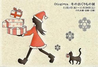 小道の先にある、レトロな古家のハンドメイド雑貨店【Otogi*za】 11月11日(木)〜11月20日(土)(うち木曜・金曜・土曜)に、 Otogi*zaギャラリースペースにて、 『冬のおくりもの展』を開催致します。 ギャラリー内には、プレゼントにピッタリなニット作品・ アクセサリー・服飾雑貨・インテリア雑貨などで いっぱいになります* 一足先に大切な人へのクリスマスプレゼントを探しに.. 自分へのご褒美を探しに出かけませんか? Otogi*za Hand made zacca & Gallery * HP * http://otogiza2010.w