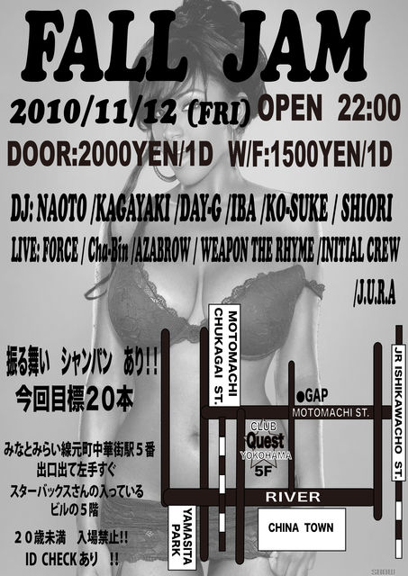 Door : 2500yen/2d, Ticket 1000yen/no drink, with Flyer 500yen off