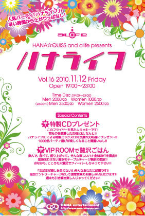 入り口でmixiを見たというとディスカウント料金1500yen/1dでご入場頂けます2010.11/12(FRI)