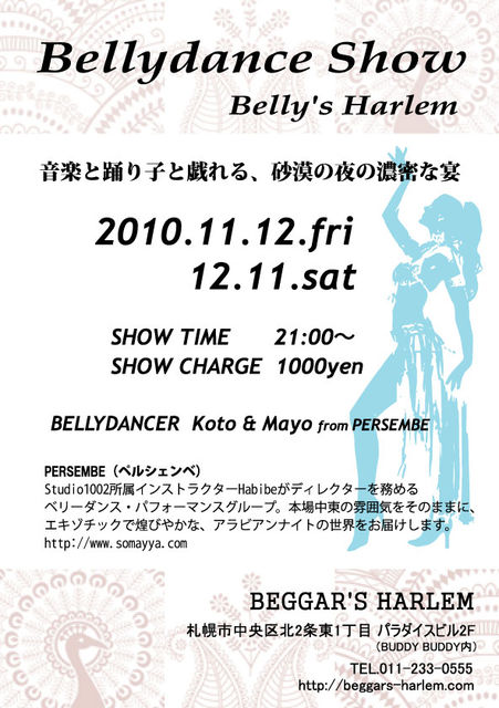 STUDIO1002所属インストラクターHabibeがディレクターを務めるベリーダンス・パフォーマンスグループ。情熱的なオリエンタル、軽快なアラブポップス、エジプシャン・フォーク・ロリックなど、バラエティに富んだ演目で構成するステージスタイルが特徴。本場中東の雰囲気をそのままに、エ