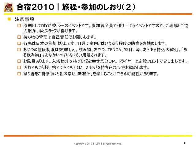 さてさて、オフ会の詳細についてですが、場所・時間などの詳細はまだ未定です。詳細が決まり次第アップしていきますのでお待ち下さい。