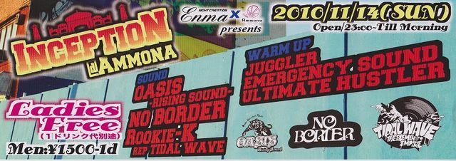10月から始まったこのDANCE!!!! 毎月第2日曜日にclub AMMONAにて開催DANCE… “INCEPTION”(インセプション)スペシャル インセプションってどんなイベント??… 早い時間はオシャレでゆっくりできるレゲエやR&Bでばっちりみんなの心をロックし、 メインタイムでは踊れて騒げて楽しめる日曜日はここだけ 11/14(日)の第二日曜日は間違いなく楽しめるので是非club AMMONAへお越しください! ◆インセプションイベント写真◆ http://photo.mixi.jp/view_album.pl?album_id=500000000750220&owner_id=21605267 ◆基本詳細