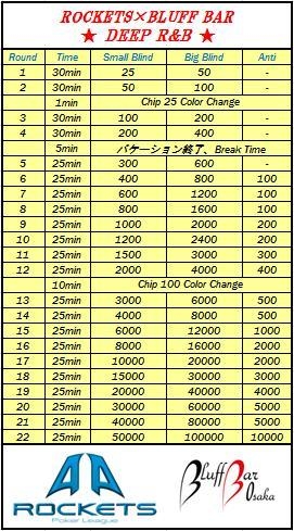 いつもROCKETS POKER LEAGUEにご参加いただき、 また、BLUFF BARにお越しいただきありがとうございます 11月14日(日)18:00から ROCKETS×BLUFF BAR合同イベント【 DEEP R&B 】を BLUFF BARにて開催いたします 今回のDEEP R&Bの優勝者には、 ROCKETSポイント“30pt”+ BLUFFマンスリーポイント“5,000点”が付与され、 また上位入賞者には賞品もご用意しております 12月5日(日)にGOLD-9で行われる ROCKETS 2年目最初のシーズン 【 7th season Grand FINAL 】 11月28日(日)にBLUFF BARで行われる 【 BLUFFマン