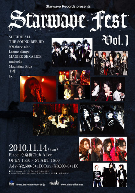 無事にアメリカライブを終え・・・・ 次の日曜日は大阪に行くよっ♪ 『毒』をひっさげて・・・☆ ぜひぜひLIVEを楽しみにきてくださいな!!! 11月14日 心斎橋Club Alive -Starwave Fest Vol.1- Starwave Records presents OPEN: 15:30 / START 16:00 前売 \ 2500 / 当日 \ 3000 出演: SUICIDE ALI THE SOUND BEE HD 999-three nine- Larme d'ange MAGIER SEXALICE umbrella Magistina Saga 十神 lix