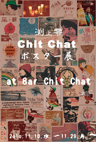 『Chit Chatポスター展』 Special Live Party vol.3 2010.11.17.水. at 新百合ケ丘Bar Chit Chat Live: ◆たけしこうじ (土生"tico"剛 <Little Tempo>http://www.littletempo.com/ , 二羽高次<Breath Mark>), ◆光風(COOL WISE MAN)&からむし http://greenmassive.com/top 予約2000yen 当日2500円 限定40名 御予約先 bar.chit.chat@gmail.com tel 044-954-4352(18:00以降 火曜定休) ※件名を「11/17たけしこうじ」としてお名前,人数,電話番号を 必ずご記入の上メールを送ってください。 open19:00 start20:00 ---------