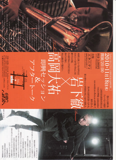 突然の書き込み失礼致します。 福岡でダンスの企画制作、自主公演をするSelbst(ゼルプスト)と申します。 山海塾の舞踊手であります岩下徹さんのワークショップも企画して8年目になります。今年はセッション公演も企画しています。セッションのお相手は、高岡大祐さんというチューバ奏者です。 絶対面白い公演になると思いますのでぜひご覧頂きたいと思いまして参加させていただきました。 以下は詳細ですので、どうぞよろしくお願いいたします。 岩下徹(ダンス)×高岡大祐(チューバ) 即興セッショ