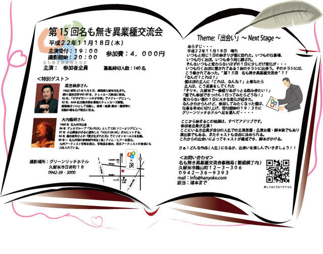 場所 グリーンリッチホテル 時間 19時受付 20時開始 会費 4000円 ゲストは、元チェッカーズの高杢さん 愛が生まれた日を歌っていた大内さん 2ヶ月に一度の大馬鹿騒ぎ!! 毎回100人を超える人たちが参加してくれてます。 参加してみたい方は連絡ください。 名も無きコミュ http://mixi.jp/view_community.pl?id=4345055 14回の写真 http://mixi.jp/view_bbs.pl?id=56724385&comm_id=4345055 13回の写真 http://mixi.jp/view_bbs.pl?id=54983263&comm_id=4345055