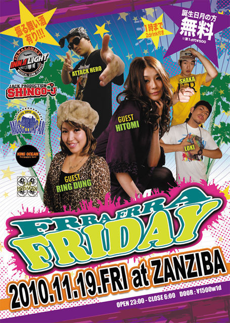 先月10月は強のリリパで、 TAK-Z&HISATOMIにも来てもらいましたが、 今月、11月19日(金)のフラフラは、 大阪&神戸の歌姫が登場〜★ 2人ともフラフラとは めちゃくちゃゆかりの深いアーティストでもあり 待望のセッションNIGHT♪ アーリーからがっちりとサウンドを楽しんでもらって 中身の濃いショーを堪能してもらって 朝方は名物のジョグリンタイムもありーので 一晩でdancehallを遊びつくせる神戸の人気DANCE!! 11/19(Fri) Frra Frra Friday @ZANZIBA 〜SINGER SP NIGHT〜 ¥1500(w1d) ※1時まで2drink付き ※11月誕