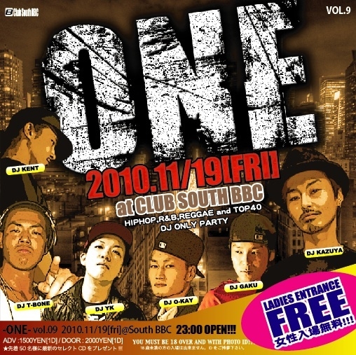 栃木県足利市CLUB SOUTH BBC 毎月第三金曜日開催中のDJ ONLY PARTY "ONE"