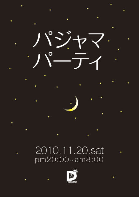 当店のコミュに参加されてる皆さん こんにちは♪ 寒い一日が…雨と共に始まった今日。。 暖かい格好でお過ごし下さいね!! で、皆さんって…就寝時、どのような格好でおやすみになってます? 何故、急にこんな質問かといいますと… お客様からのリクエストから始まった今回のイベント企画☆ ハィ。パジャマパーティ☆www 子供の頃や学生時代にお泊まり会的なもので盛り上がった記憶ありません? 今週の土曜日…20日のBar D nakano はBarというよりもホームパーティ的な感じでパジャマパーティを開催致します