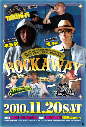 告知失礼します。 2010.11.20(SAT) Rock Away Crew presents!! 《ROCK AWAY》 at.新宿 GARAM 〈Guest Artist〉 風(FOO) http://m.mixi.jp/view_community.pl?id=1493292&guid=ON 本気男(MAJIMAN) http://www.majiman.com/ 〈Guest Sound〉 TAXI Hi-Fi http://m.mixi.jp/view_community.pl?id=1815342& HI-PERSONAL 〈Sound〉 SPECIALIST http://m.mixi.jp/view_community.pl?id=2859391& Run Up Star http://m.mixi.jp/view_c