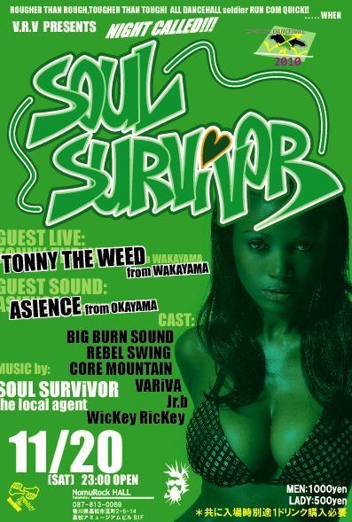 11月のSOUL SURViVORはもうSOUL SURViVORではお馴染み岡山からASIENCE!そして和歌山からハーモニストTONNY THE WEEDも登場!!