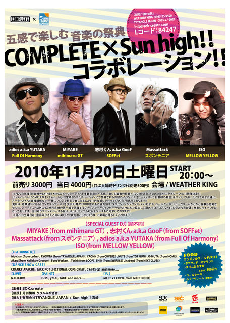 宮崎市WEATHERKINGで開催されるCOMPLETE×Sun high!!