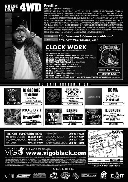 11月はBACHLOGICとSEEDA/DJ ISSOによるCONCRETEGREENがフルサポートしたアルバムをリリースしたばかりの4WDをゲストに迎え盛大に開催します!!