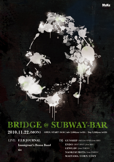 21日に広島県西条、22日に三重県四日市でライブです! 新生IBBを体験しに是非是非遊びにきて下さい!!! ライブ会場限定販売のアルバムもついでに如何!? お待ちしてます!!! ■日時 2010年11月21日(日) ■会場:広島県東広島市西条町 賀茂輝酒造 円座(わろうだ) ■Open 15:00 Start 16:00 ■前売3,300円(w1d)/当日3,800円(w1d) ■LIVE うぐいすパーク Immigrant's Bossa Band ■チケット問合せ・取扱い [ franc's ] 広島県東広島市西条朝日町6-48 TEL082-421-5896 http://www.francs.jp e-mail francs@circus.ocn.ne.jp