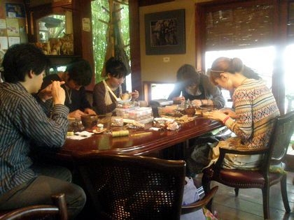 金沢文庫駅から称名寺方向に歩いて7分のところにある 隠れ家的なカフェ、ばおばぶでヘンプアクセサリー教室を行っています。 ヘンプとは、麻ひものことで、道具を使わずに麻ひもだけで 簡単にアクセサリーが作れます☆ 初心者の方でも、簡単に作れてしまいます! とてもゆったりなカフェに教室なので、おしゃべりしながら、 まったりという感じです♪♪ 初めての方も、もちろん大歓迎です!! 初めての方は、簡単なブレスレットを作って頂こうと思っています。 お気軽にご連絡くださーい♪ 場所 : カフェギャラリー&窯
