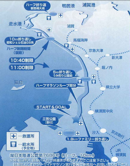 いよいよ今週末になりました!! 急に寒くなりましたので体調管理には充分留意してください 一番早いハーフ受付が7:15からですので7:00くらいにはMMナイトランのベースを設営します のぼり旗を目印にお集まり下さい 集合写真を8:00頃撮影しますのでアップ中の方もベース再集合をお願いします 〔第35回よこすかシーサイドマラソン〕 ・開催日 2010年11月21日 (日) ・種目 ハーフ(公認)制限時間:2時間30分/男子陸連登録者 男女別15歳〜39歳 男子40〜59歳 60歳以上 女子40歳以上 10km(公認)制限時間:1時間20分/男女別15歳〜3
