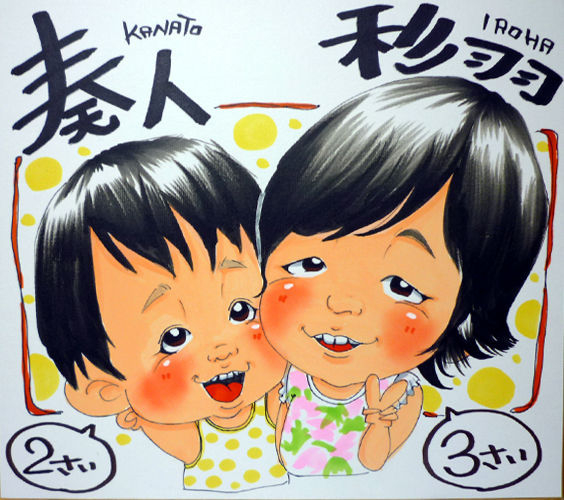 前回、大好評だった似顔絵イベントの第2弾を開催いたします。 来る11/24(水)、似顔絵師の「ちひろ」が当店で似顔絵イベントを開催いたします。 現在、明石、神戸、大阪を中心に似顔絵やデザインの仕事で活躍中の「ちひろ」。 柔らかく、かわいいタッチで特徴をよくとらえた似顔絵は、インテリアにはもちろん、プレゼントや、結婚式などのウェルカムボードなどに使われていて大人気です。 今回は色紙サイズの似顔絵にさせていただきます。 価格は一枚1000円(色紙一枚にお一人さまの場合です)プラスワンドリンク(別