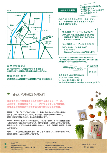 雑貨屋 itsumo 主催「TRUNK MARKET vol.4」開催決定! あなたの「イラナイ」が だれかの「シアワセ」に。 家に眠っている まだまだ着れる洋服。 聞かなくなったCD。 読んでしまった本。 雑貨。おもちゃ。文房具。楽器。食器。・・・ リュックサックやトランクに たくさん詰め込んで大集合! ちょっと洒落たフリーマケット。 見るもよし、物々交換もよし、売るもよし。 すごーく、たのしい1日になるはず。 出店数には限りがありますので、お早めに! 青空の下 たくさんのふ