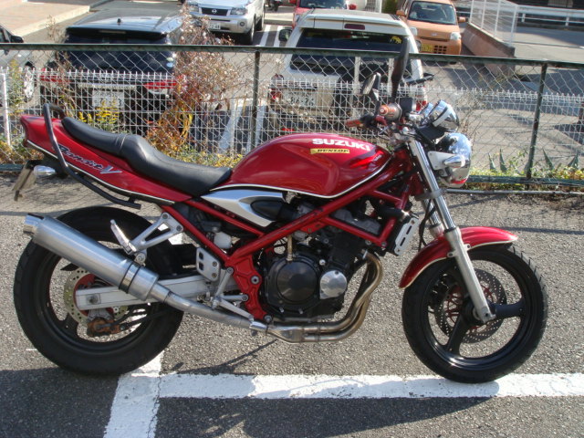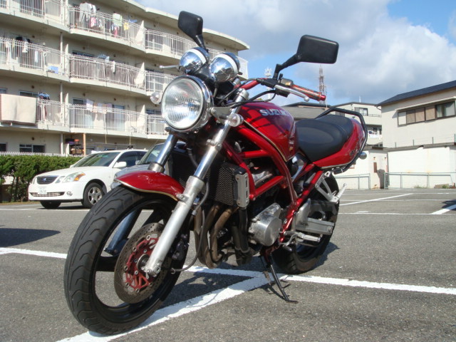・メーカー名:スズキ ・車名:バンディット250V ・年式:平成9年 ・車体番号:GJ77A−10****(下4桁は伏字で構いません) ・2st/4st:4st ・排気量:250cc ・色:赤 ・自走: 可能 ・走行距離:17300km(多少増えます) ・車検/自賠責の有無:自賠責平成24年11月まで ・事故歴:なし ・キズや不具合の有無: 目立った傷はないと思います (ある場合は詳しく) ・カスタム箇所や装備:ハンドル、グリップ、ウィンカー、サイドミラー、マフラー(WRS)、タンデムグリップ、ブリーザ