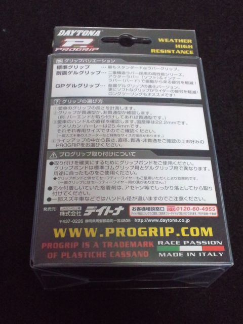【売】DAYTONA PROGRIPU ・パーツの名称: グリップ ・パーツのメーカー: デイトナ ・もともと付けていた車両名称/適合車種 汎用品でFZR400RRに同じものを付けていました。 ・状態:新品未開封 ・サイズ/重さ: ・発送方法: エクスパック500に入ります。 ・希望価格 1000円 ・コメント(その他自由に) エンド貫通型 L=径22×120mm R=系25×120mm ロングツーリングにオススメです。