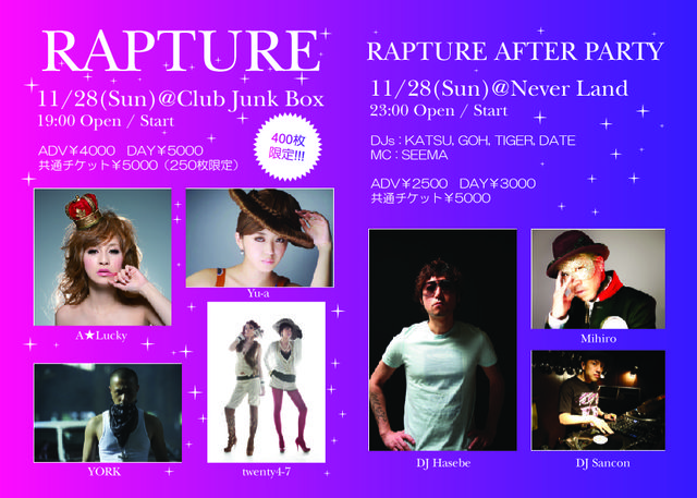 AFTER PARTY共通チケット ¥5,000- (250枚限定)