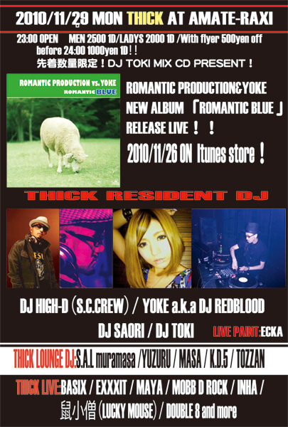 2002年より開催の長寿HIPHOP&BLACK MUSIC PARTY、THICK。