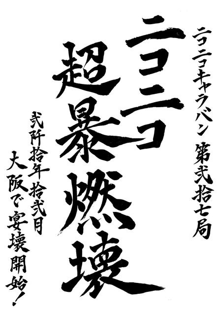 Niconico Caravan#27 ニコニコ超暴燃壊 会場:Triangle http://www.triangle-osaka.jp/ ADV.2000yen(1Drink) 2010 12/18(土)12:00〜19:00 DJおよび担当 St.1 NiesoX(キョン隊) ※OPDJ/東方 St.2 五条狐萩(天燈通信社) ※東方音盤/ミクトロニカ St.3 はじめちゃん((D:)ドライヴ/Voc@loid Lounge) ※VOC@LOID St.4 AOiRO_Manbow a.k.a. hapi⇒(SBFR/他力箱) ※hapi⇒core/カービィ/ポケモン St.5 E-ROGic(CAOFF WEST) ※お笑い St.6 夜叉 ※ニコニコアンセム/おっさんホイホイ St.7 MUZIK SERVANT(音