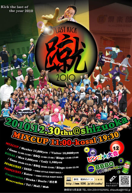 今年もやるよ!!12月30日大晦日晦日蹴り納め個人フットサル 参加者大募集!!昨年は、40名の参加が有りました 今年は、60名へと募集枠を拡大して開催したいと思います ☆今年の内容☆ 昼間(11:00〜17:00) MIX&エンジョイCUP☆豪華景品あり☆ 開催 10チーム ☆フットサルアイテムが当たる!!BINGOゲーム&ブラジルBBQ開催☆ メンバー/15,000円 ビジター/18,000円 夜(19:30〜24:00) 大晦日晦日蹴り納め個人フットサル ☆フットサルアイテムが当たる!!BINGOゲーム&ブラジルBBQ開催☆ ☆フリース