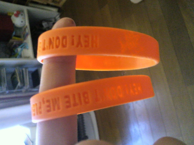 トピのほうではご迷惑かけましたm(__)mトピで企画を立てましたが、イベントのほうで立て直します★★ あらためまして、【ハイタッチ】の企画をしたいと思います♪♪ ゴムのカラーは“オレンジ”です☆☆ラバーブレスでもシュシュでも大丈夫です↑↑ オレゴムを右手につけて、会場内で、同じくつけてる人がいたら…… 自分:『音楽がないと〜?』 相手:『年越せない!!!』 ハイタッチ☆☆☆ 2人:『イエーイ』 みたいな感じです★★ 夏のロッキンで、やったのですが恥ずかしがらずに、ノリノリでいけば、みんなハイタッチして
