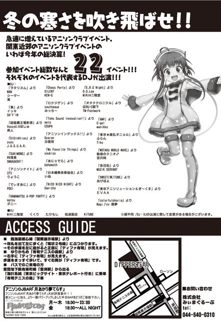 ■■■■■■■■■■■■■■■■■■■■ !!!緊急速報!!! 急遽決定!!! mixiでの参加表明をされた方”のみ”           ¥500OFF!!! ※入場をスムーズにするために参加表明をした自分のコメントを 出しておいて下さい。 ※フライヤーを持参していただいても割引にはなりません。 ■■■■■■■■■■■■■■■■■■■■ 夏のコミケから約半年...... またこの季節がやってきた!!!!! オタクなら・・・そう!! 夏はコミケ!!冬もコミケ!!! アニソンイベントなら・・・そう!!