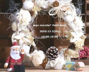 イベントのお知らせです。 ドライフラワーだけを使ったナチュラルなクリスマスリース作りします。 mon marche* Petit Noël〜小さな雑貨店〜 日時 2010年12月2日(thu)10:00-15:00 場所 ?Tomorrow ツモローサロン 〒615-8025 京都市西京区桂稲荷山町78ドムス桂1F TEL 075-381-0730 http://tomorrow-homes.com/ ※キッズスペースあり 2,000円(材料費込) 新鮮でセンスのいい花材をご用意します。 自由にデザインしてください。 持ち物は何もいりません。 ご予約はメッセージでお願いします。 * 小さな雑貨店はこ