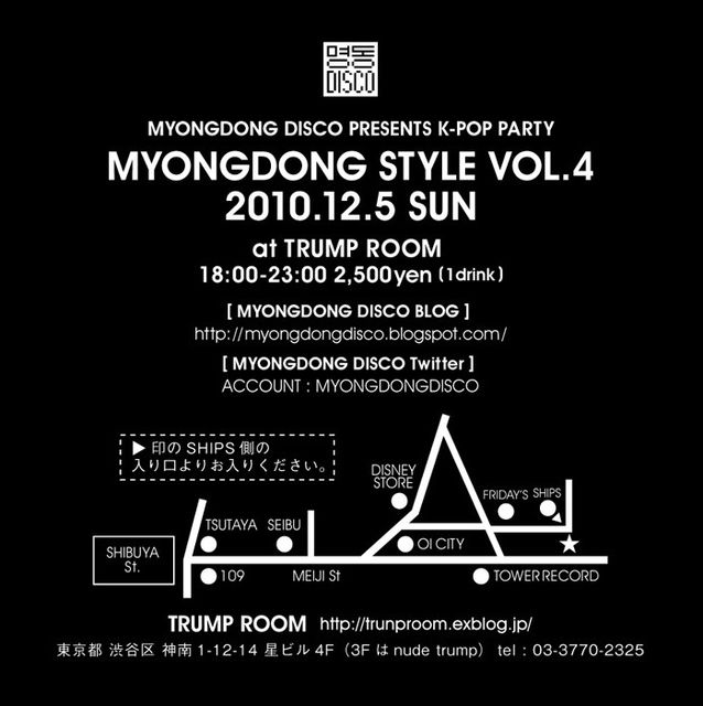 ※管理人様スペースお借りします。 ミョンスタ vol.4が開催決定しました!!! 今回は年末豪華版!!! なんとあの渋谷TRUMP ROOMでやっちゃいます!! 豪華絢爛なTRUMP ROOMでK-POP! そしてそして今回の特集は、 輝くSHINee!!!! ハイクオリティーなSHINeeのヒット曲満載でおおくりします! もちのろん!マニアックな通好みK-POPもモリモリかけちゃうので お楽しみに〜〜〜!! K-POP好きのみなさん!お洒落して集合っ!!! MYONG DONG DISCO presents K-POP PARTY 『MDST1(ミョンドンスタイル)-vol.4-』